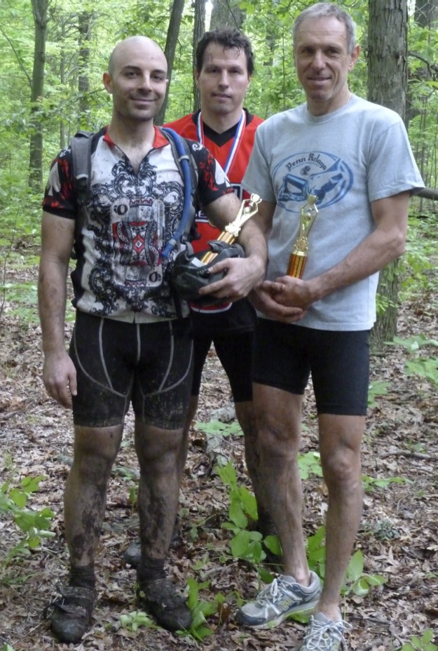 It had rained incessantly over the past several days and I knew that this could only be a bad omen for today’s race. The thought of riding through tons of mud out there on the course was constantly bearing down on my mind, for a mountain bike rider has to exert a LOT more energy just to keep their bike moving ever-so-slowly through the mud, and I would have to do this for six hours! My mind already switched into Survival Mode and thought about the options on how I can obtain the energy needed for the ordeal that was about to unfold. I found out later that Matt went to great lengths over the past several days to sweep, rake away, and cover up with leaves as much water and mud as possible along the race route.