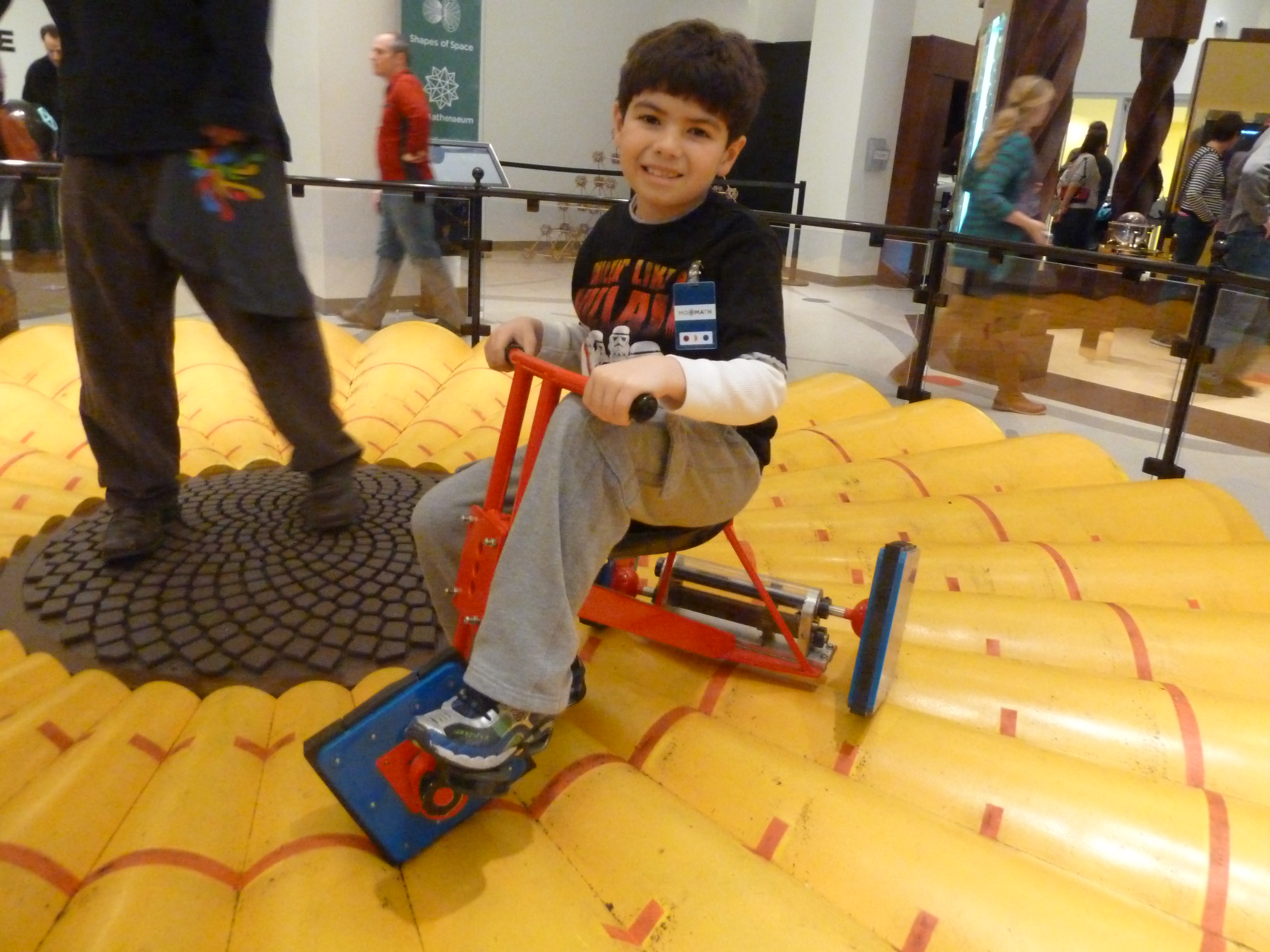 For his 9th birthday in February, we celebrated at the Museum of Math (MoMath) in Manhattan.  There you can ride on a square-wheeled tricycle that really works.