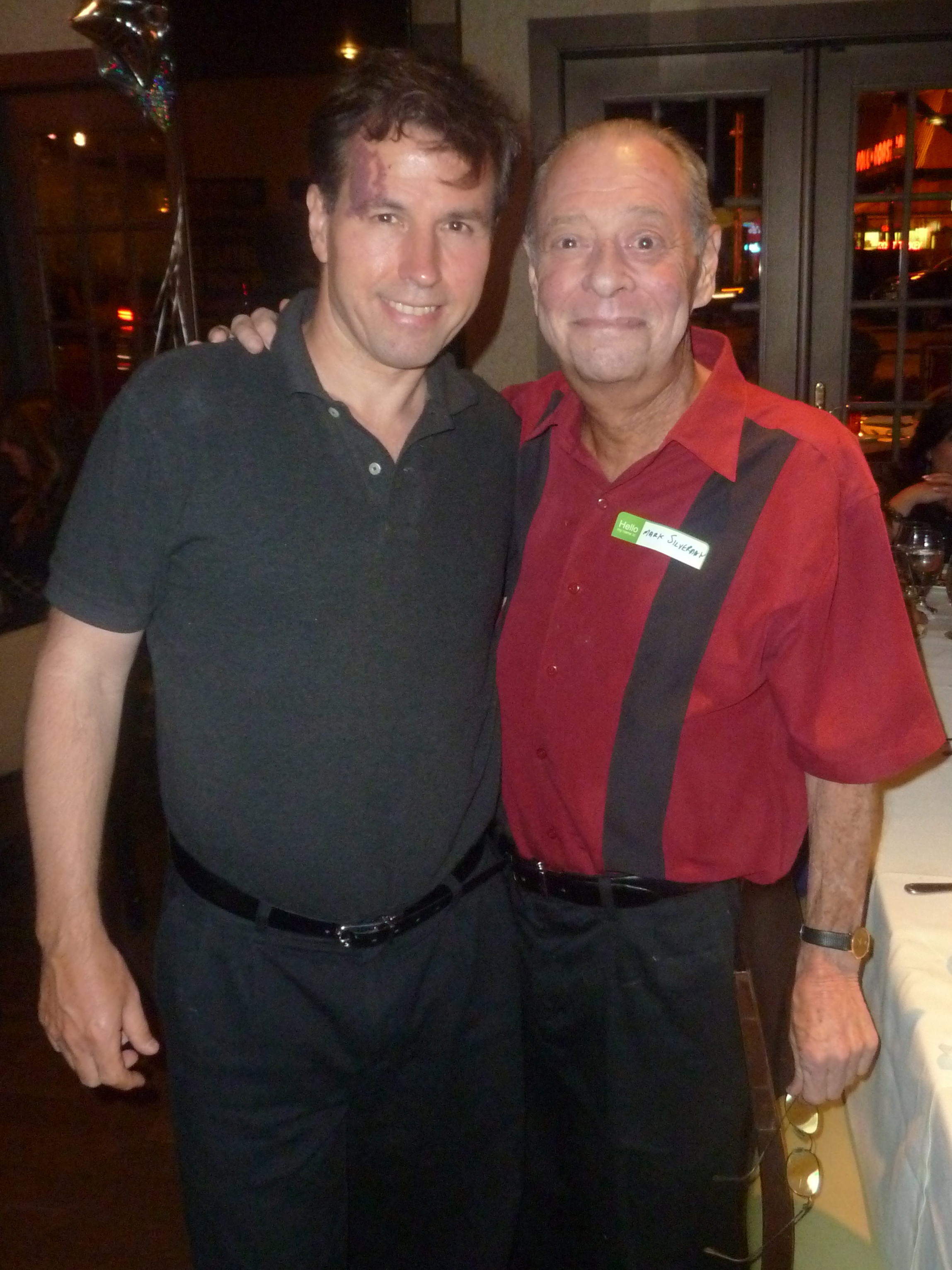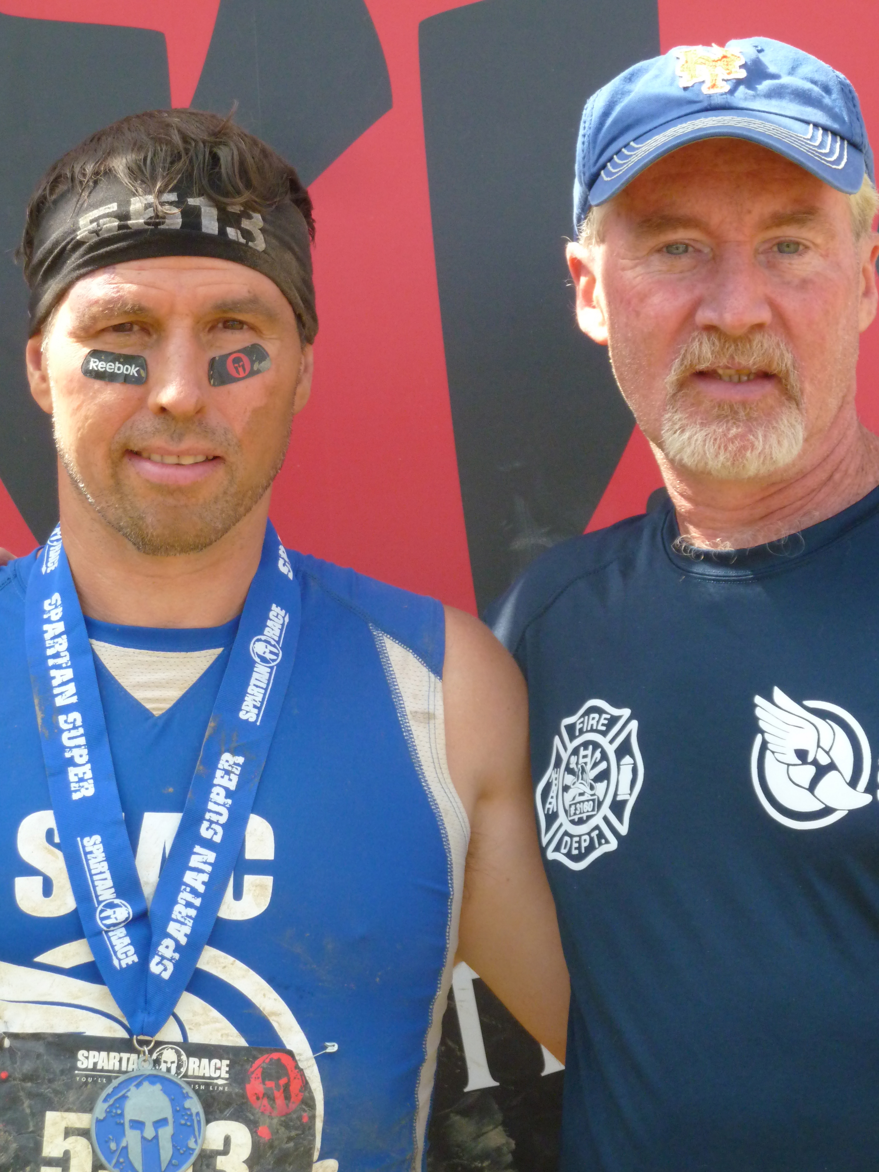 I participated in the Super Spartan race for the first time.  Some of the challenges I had to do was drag a 50-pound bag of rocks over a long distance, climb a rope and jump over fire.  My left hand got hurt badly from being hit by a punji stick by a large gladiator moments before I crossed the finish line.  After several months, my hand finally returned back to normal.  Here’s a photo of me and my good friend, running buddy, fellow thespian and teammate Mark Vogt.  Our antics together during the race helped make it fun.
