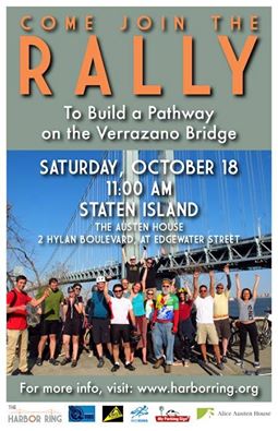 For years, I’ve always supported the idea of having a pedestrian path built on the Verrazano Bridge. All other bridges throughout New York have a way for bikers, walkers and runners to get across to the other boroughs. I find it very unfair that to get to Staten Island from Brooklyn or vice versa, you are forced to use a car. Putting action to this cause, I signed an online petition and have encouraged many of my friends and family to sign it. This year, I wanted to go one step further and got in touch with the man who was the Chairman of the Harbor Ring Committee. His name was Paul Gertner. In conjunction with the 50th anniversary of the completion of the Verrazano Bridge in November, Paul, Meredith Sladek, several other supporters and I worked together to hold a rally on the Staten Island side of the Verrazano. I was in charge of getting Staten Island runners and a few politicians to attend the rally. On October 21, the rally was held at the Alice Austen House. With the Verrazano Bridge serving as the perfect backdrop, several local politicians spoke about the need to make this pedestrian path a reality. The politicians, including Michael Cusick, Vincent Gentile and Martin Golden gave very moving speeches on the importance of this project and its benefit to all. Staten Island Athletic Club President Mark Vogt spoke recalling memories of the Bridge throughout his youth and how it has connected important moments in his life and how it continues to do so today with the friends he has made in Brooklyn. I even said a few words after he was done.