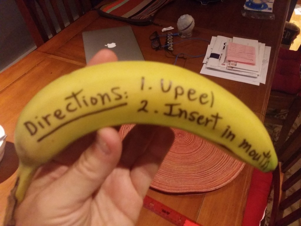 Hunter has a wicked sense of humor, so I began writing funny banana messages to him.