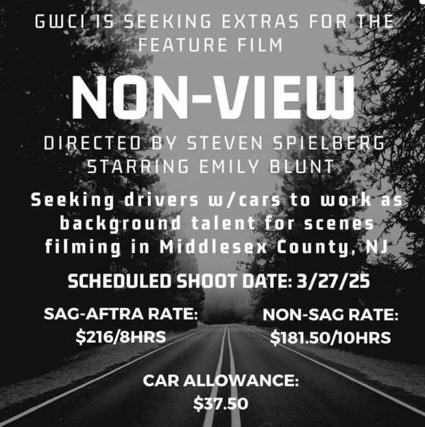 In February, I got hired to be a background performer in a new Spielberg film about aliens. They needed actors with their own cars. The scene was a gas station with a minimart in a small town in New Jersey. We were asked to park our cars all over the gas station. Our actions were to walk very quickly to the minimart, grab whatever we could, then leave the minimart immediately. We had to act as if we knew the aliens had already came to Earth, and we had to act fast to survive. Non-View was the working title, but has since been renamed Disclosure Day. It will be premiering in the summer of 2026.