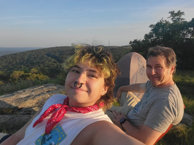 In July, I went backpacking with my daughter Emma. We started at the Delaware Water Gap and hiked the Appalachian Trail towards Sunfish Pond. We set up our tents to enjoy the sunset on top of the mountain.